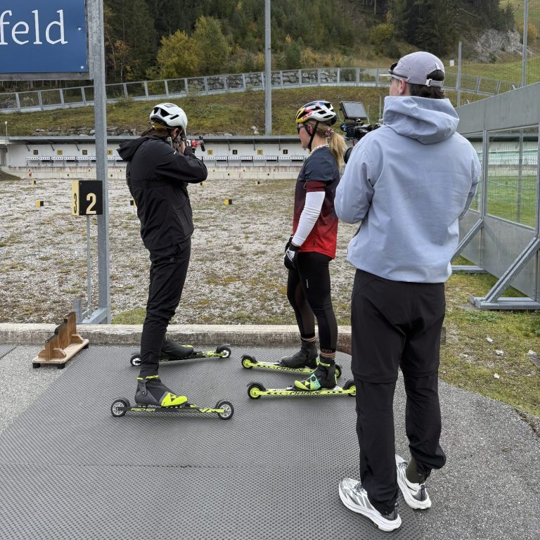 Vom Passo di Lavazè ging es für uns direkt weiter nach Antholz, wo der zweite Teil des Höhentrainingslagers stattfand – auch das Herrenteam war dabei. Dieses Mal ist Antholz nicht irgendein Trainingsort. Es ist der Austragungsort der Olympischen Spiele 2026. Schon bei der Anreise durchs Antholzer Tal fielen mir sofort die Olympischen Ringe ins Auge und entfachten in mir eine gewisse Vorfreude. Die Qualifikation für diese Spiele ist mein große Ziel in der kommenden Saison.